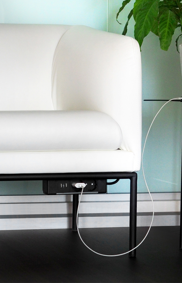 Блок может крепиться на рабочий стол, к столешнице снизу или каркасу мягкой мебели, а также располагаться