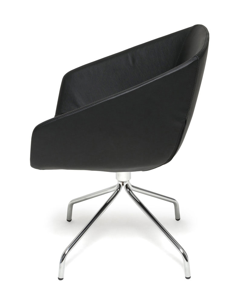 В складском ассортименте модель представлена в обивке из натуральной кожи черного цвета, а также с несколькими основаниями на выбор: 4-лучевое