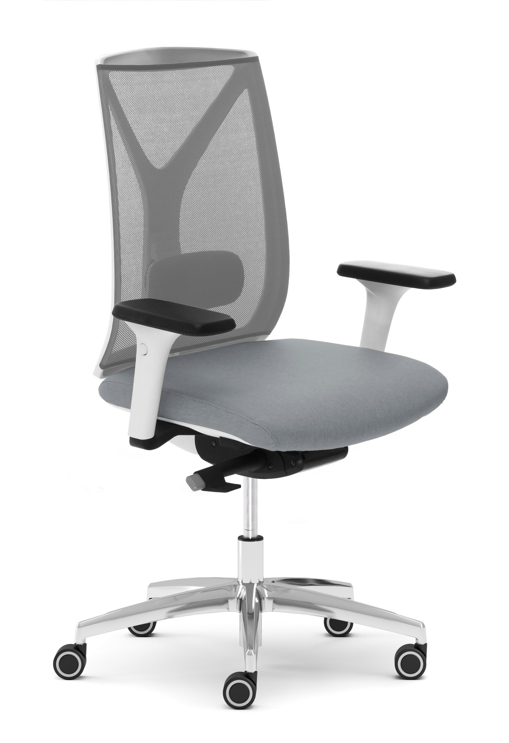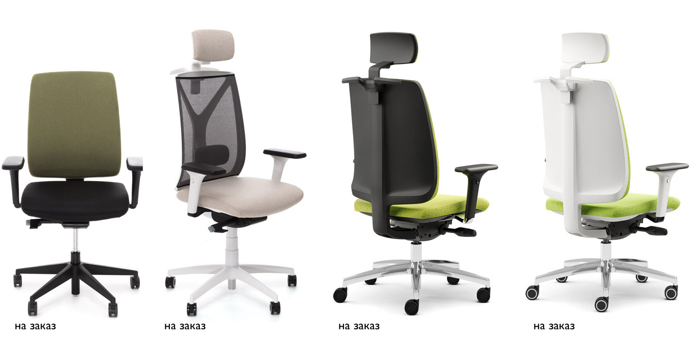 В складской ассортимент вошли кресла со спинкой в сетке  и обитые полностью, с черным и белым каркасом, базой в черном пластике или полированном
