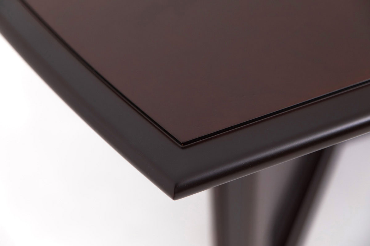 Столешница по периметру обрамлена фигурной рамкой из массива, тонированного в цвет столешницы.