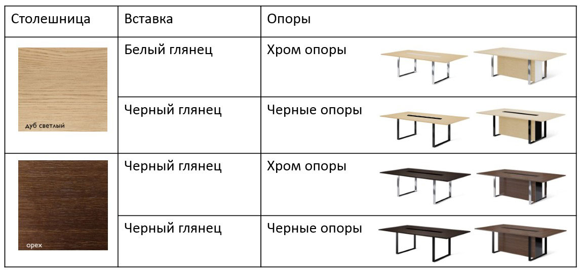 На сайте можно видеть три варианта модульных столов: L256, L396, L536. Также можно получить более длинные композиции с шагом +140 см ( L676, L816,