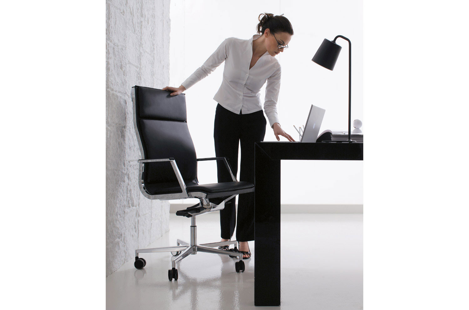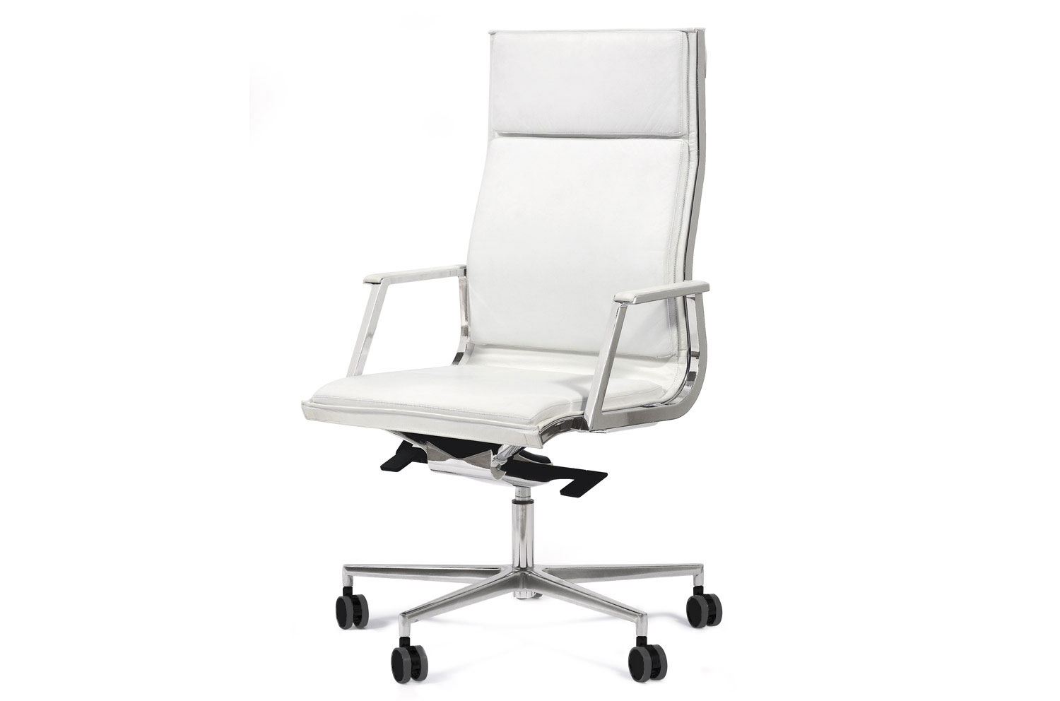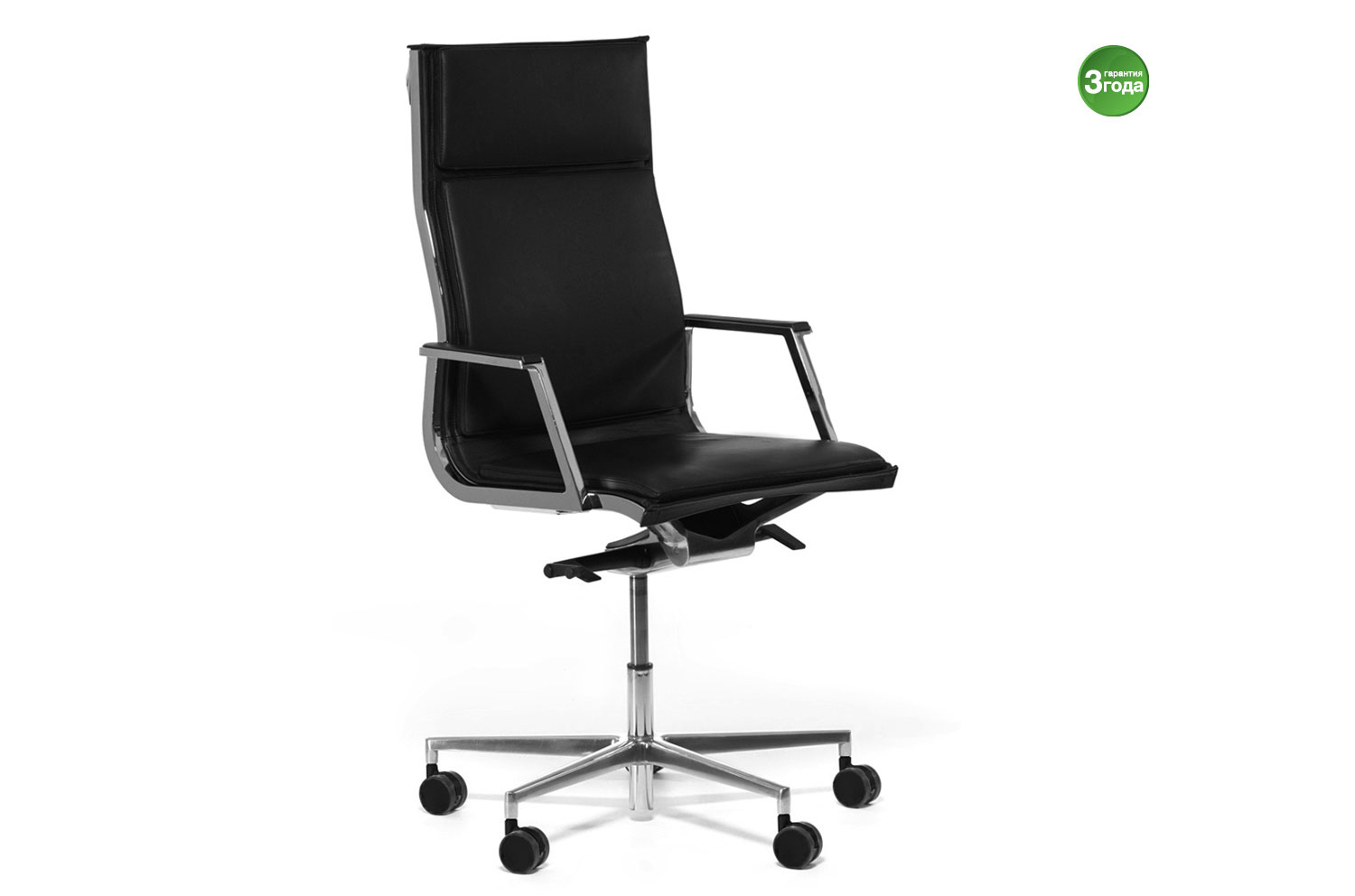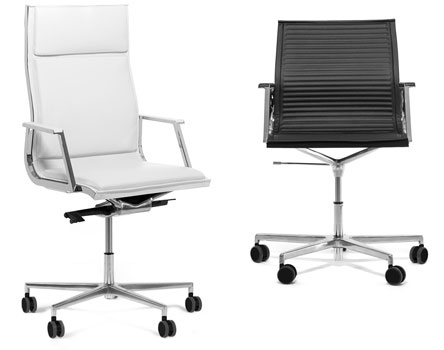 Нулит-Пад/Nulite-Pad в складской программе представлен креслами на хромированной базе с высокой спинкой в двух цветах кожи: черном и белом. Кресло имеет механизм качания с настройкой по весу сидящего и регулировку сиденья по высоте.