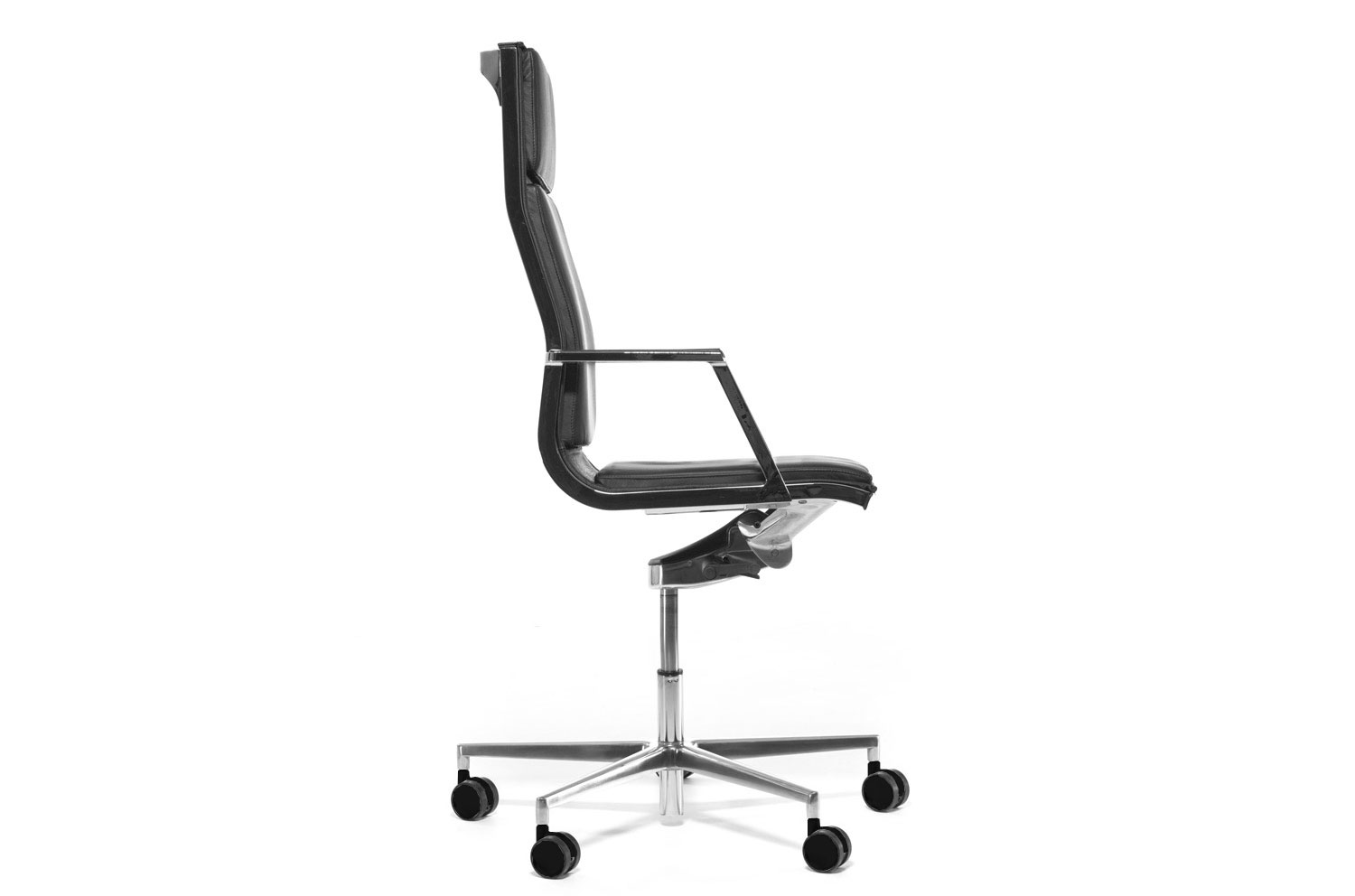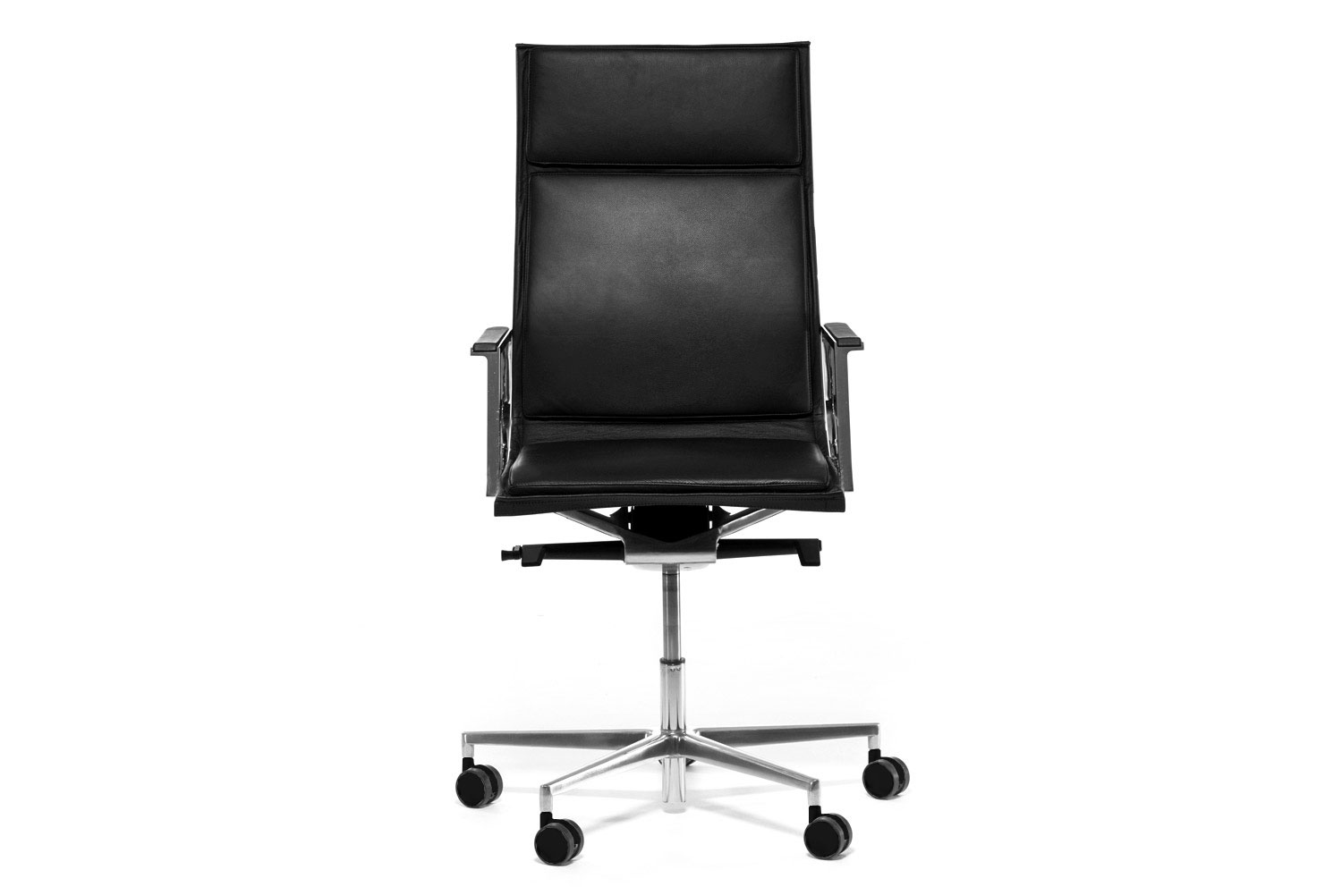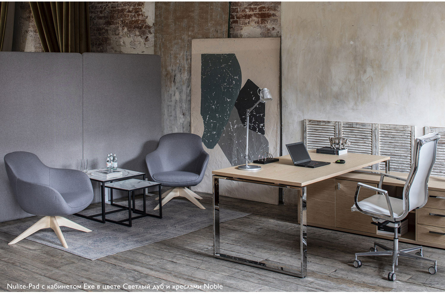 Нулит-Пад/Nulite-Pad в складской программе представлен креслами на хромированной базе с высокой спинкой в двух цветах кожи: черном и белом. Кресло имеет механизм качания с настройкой по весу сидящего и регулировку сиденья по высоте.