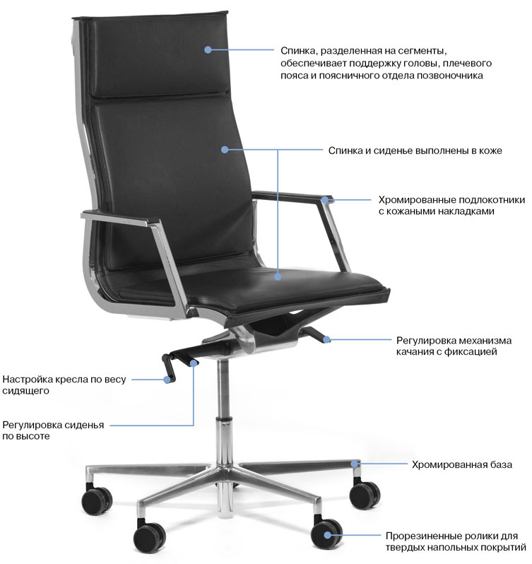 При правильной установке спинка кресла и спина находятся в балансе, кресло с легкостью следует движениям тела.