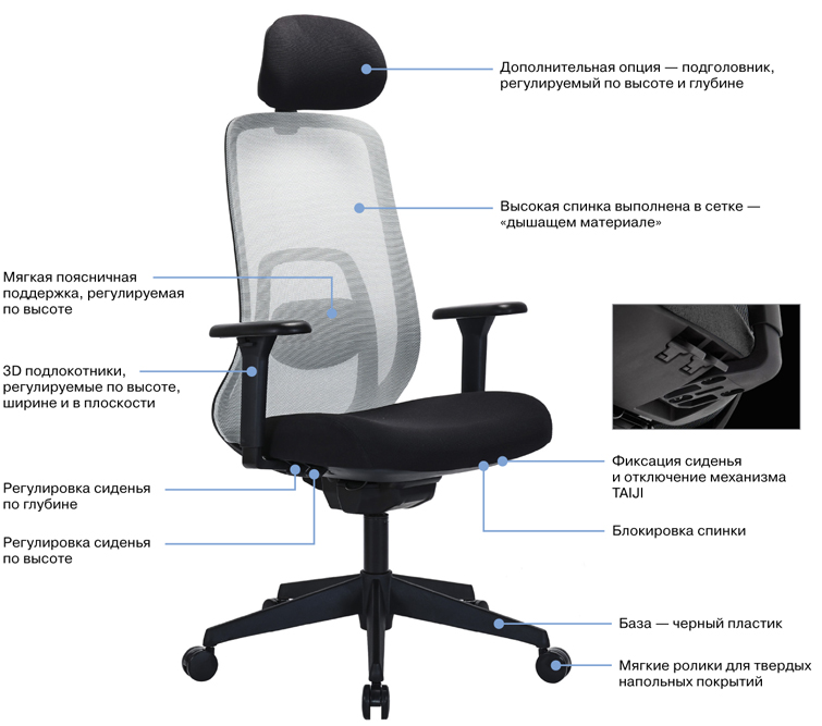 АРИЕС/ARIES Кресло рабочее пдг, черн СЕРО-ЗЕЛ/ЧЕРНЫЙ