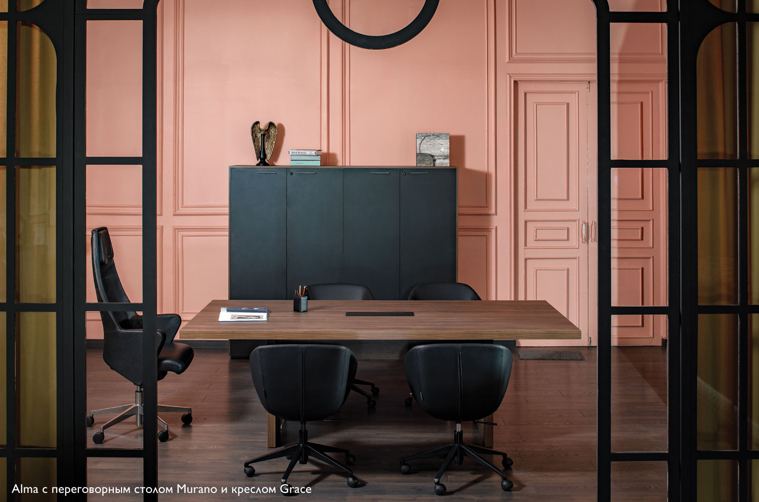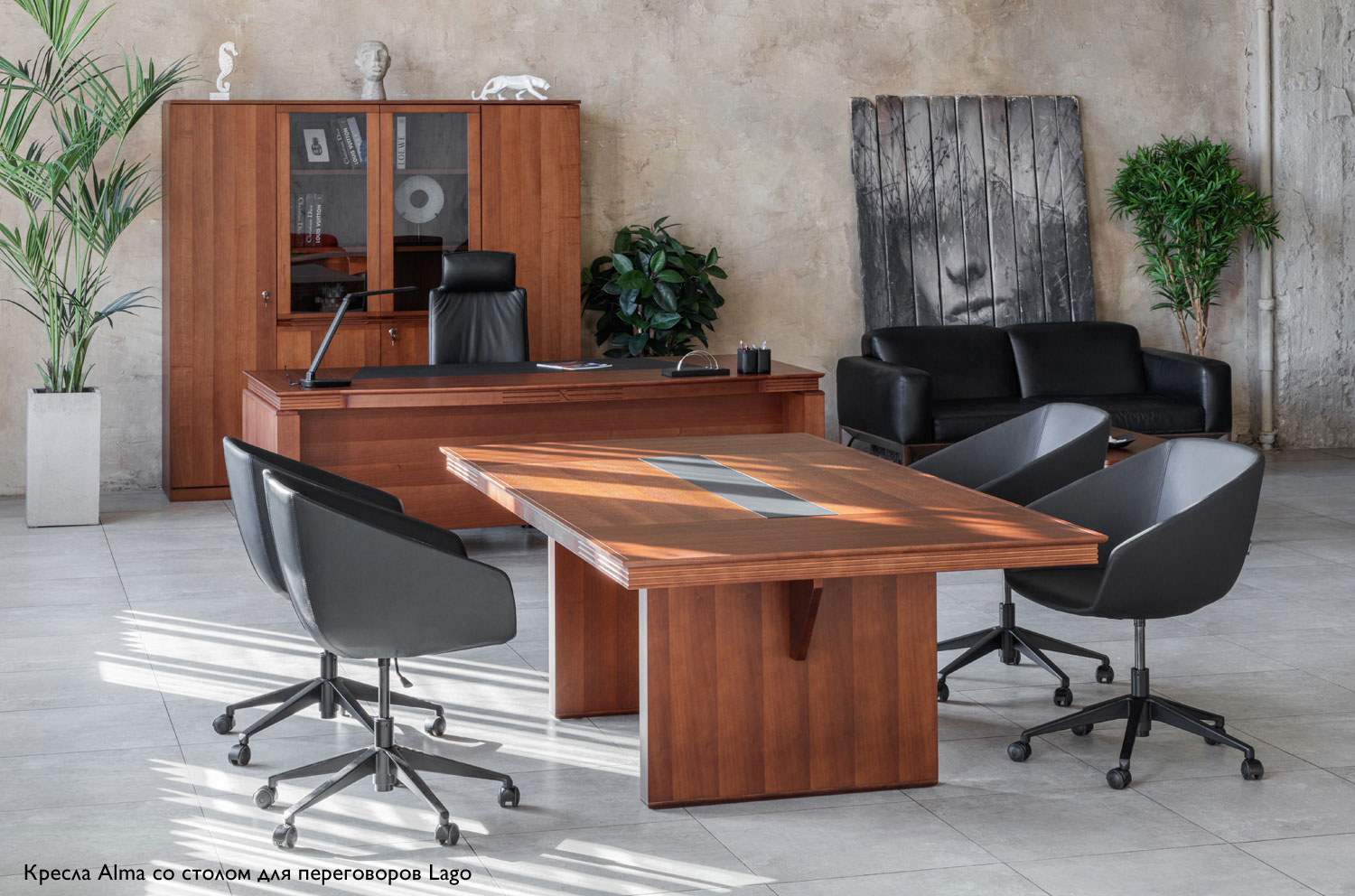 АЛМА/ALMA Кресло посет., металл ЧЕРНЫЙ/КОЖА