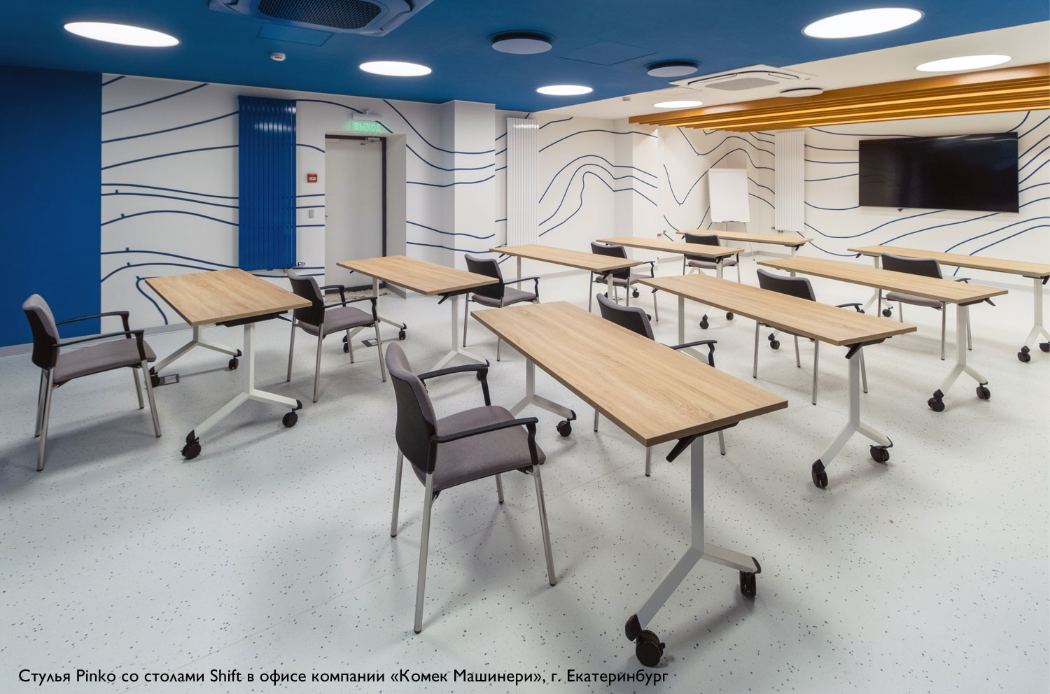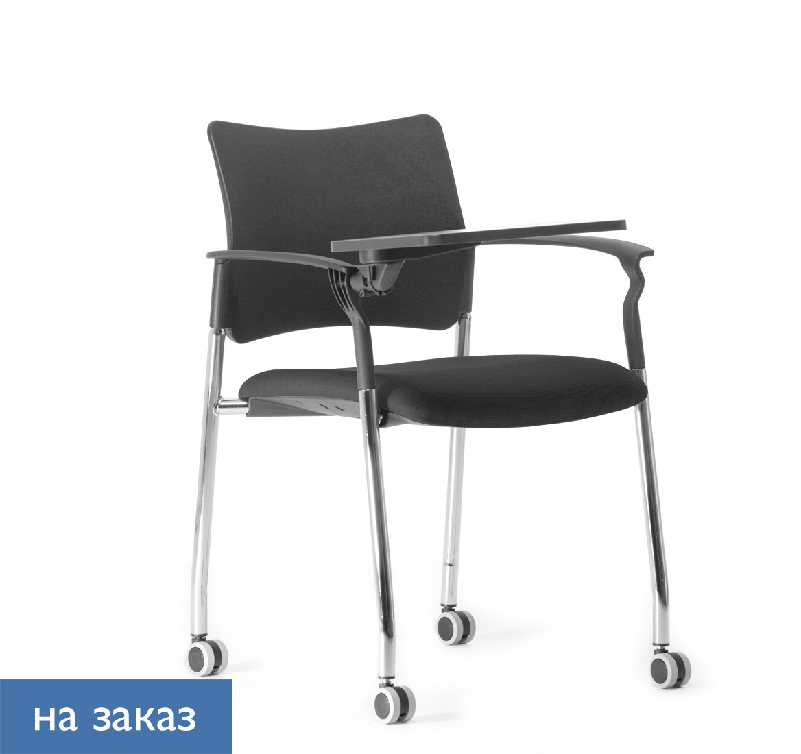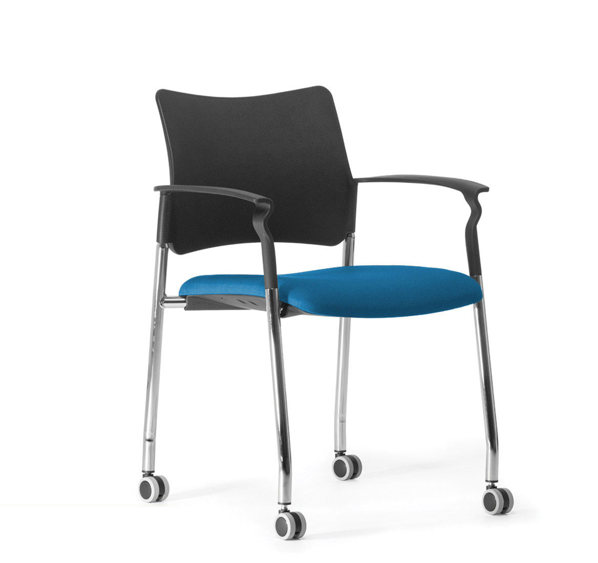 ПИНКО/PINKO Кресло обитое,на колесах ЧЕРН/ГОЛУБОЙ/ХРОМ