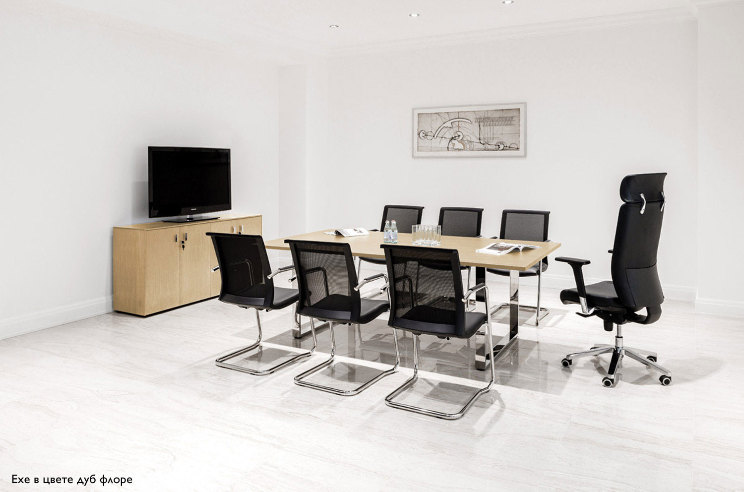 ЭКЗЕ/EXE Стол для переговоров Хром ДУБ СВЕТЛЫЙ/ХРОМ
