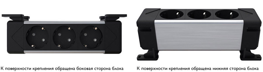 АНДЕР ДЭСК/UNDER DESK Блок из 3 розеток ЧЕРНЫЙ/АЛЮМ