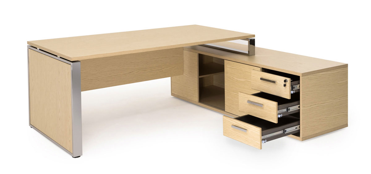 ЭКЗЕ/EXE Стол на оп.тумбе 189,прав ДУБ СВЕТЛЫЙ/ХРОМ