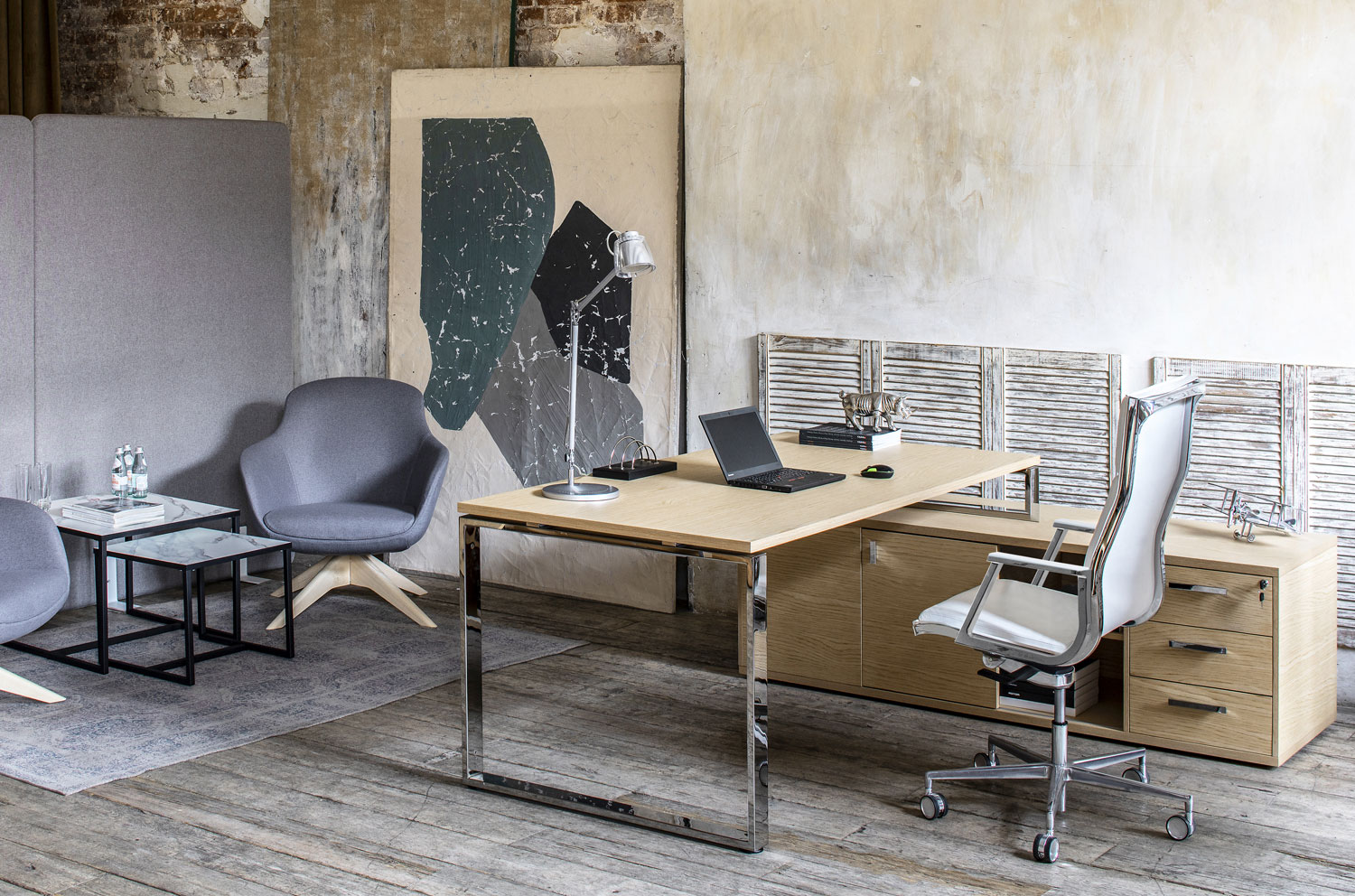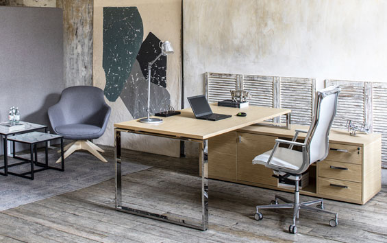 ЭКЗЕ/EXE Стол на оп.тумбе 229 хром ДУБ СВЕТЛЫЙ/ХРОМ