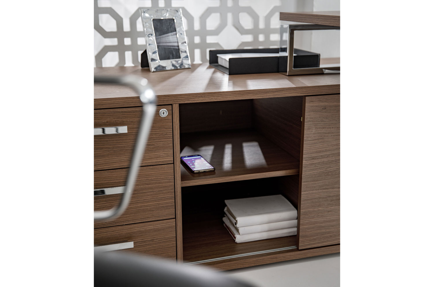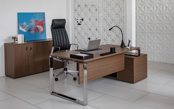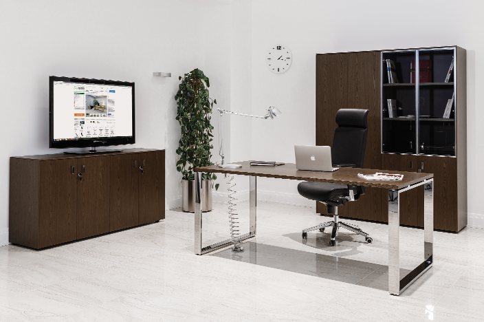 ЭКЗЕ/EXE Стол на оп.тумбе 189 хром ОРЕХ/ХРОМ
