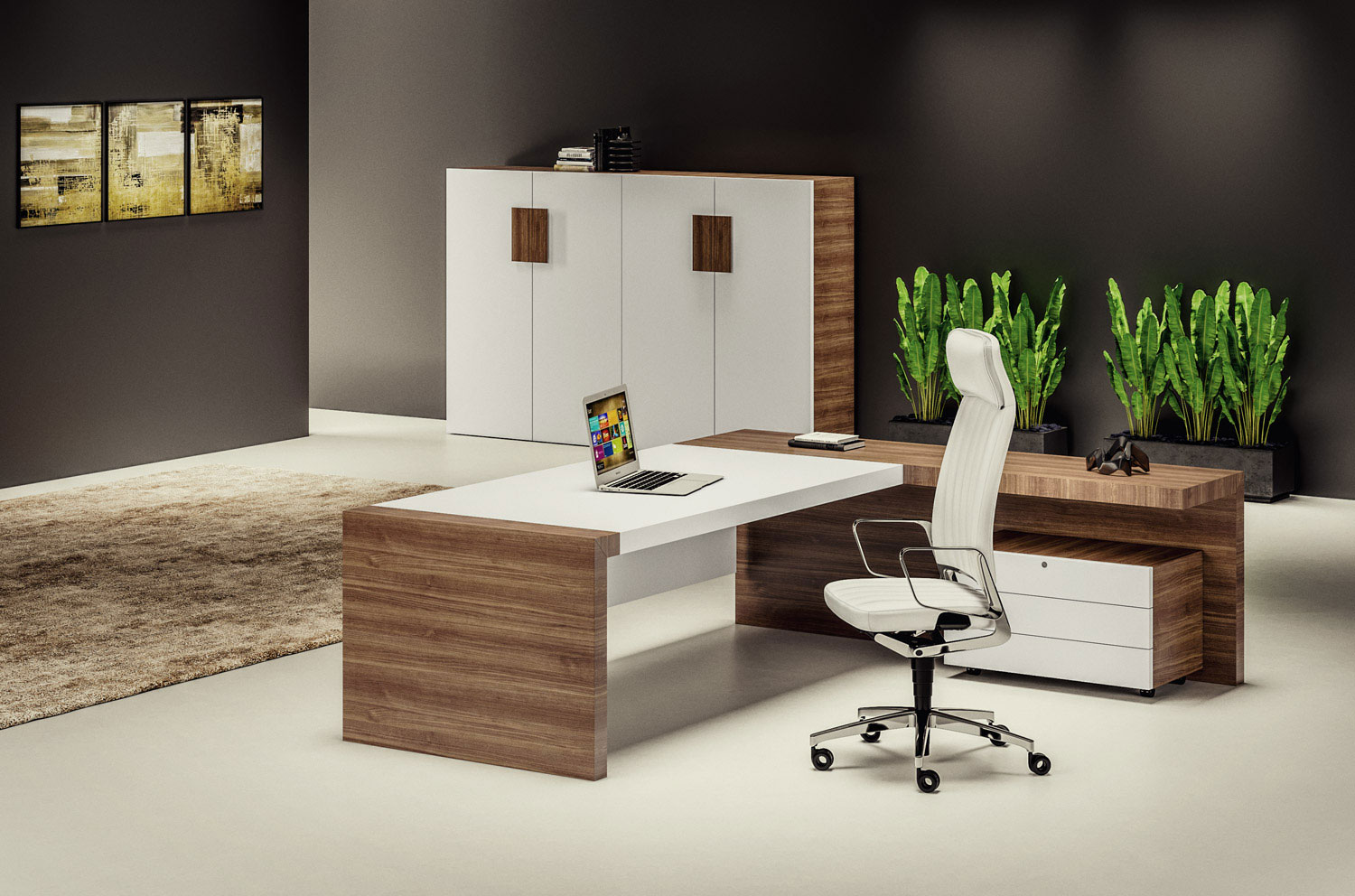 КИО/KYO Тумба подкатная, 3 ящика ОРЕХ/БЕЛЫЙ