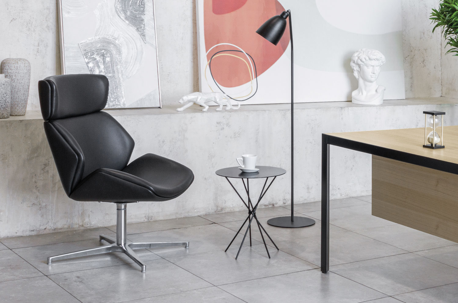 - черная матовая металлическая столешница на черных металлических опорах.