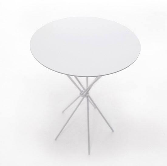 - металлическая белая глянцевая столешница и белые металлические опоры;